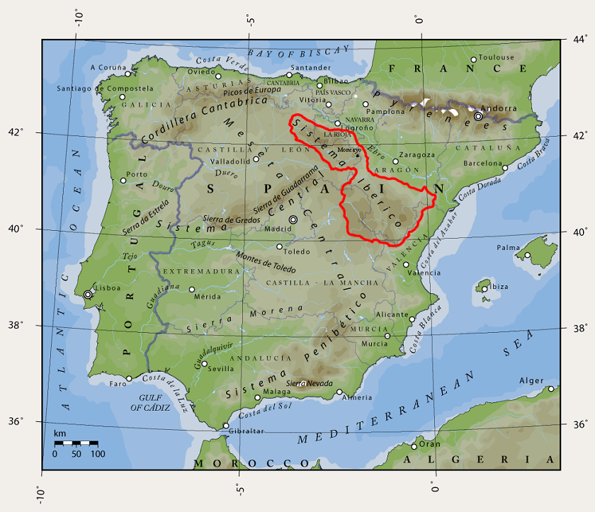 - Locatie Sistema Ibérico. Author – derivative work: FDV, license CC BY-SA 2.5