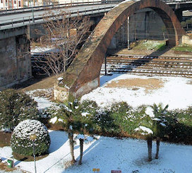 - De bakstenen boog over de sporen. Deze constructie,,,,. Author – Rondador, license CC BY-SA 3.0
